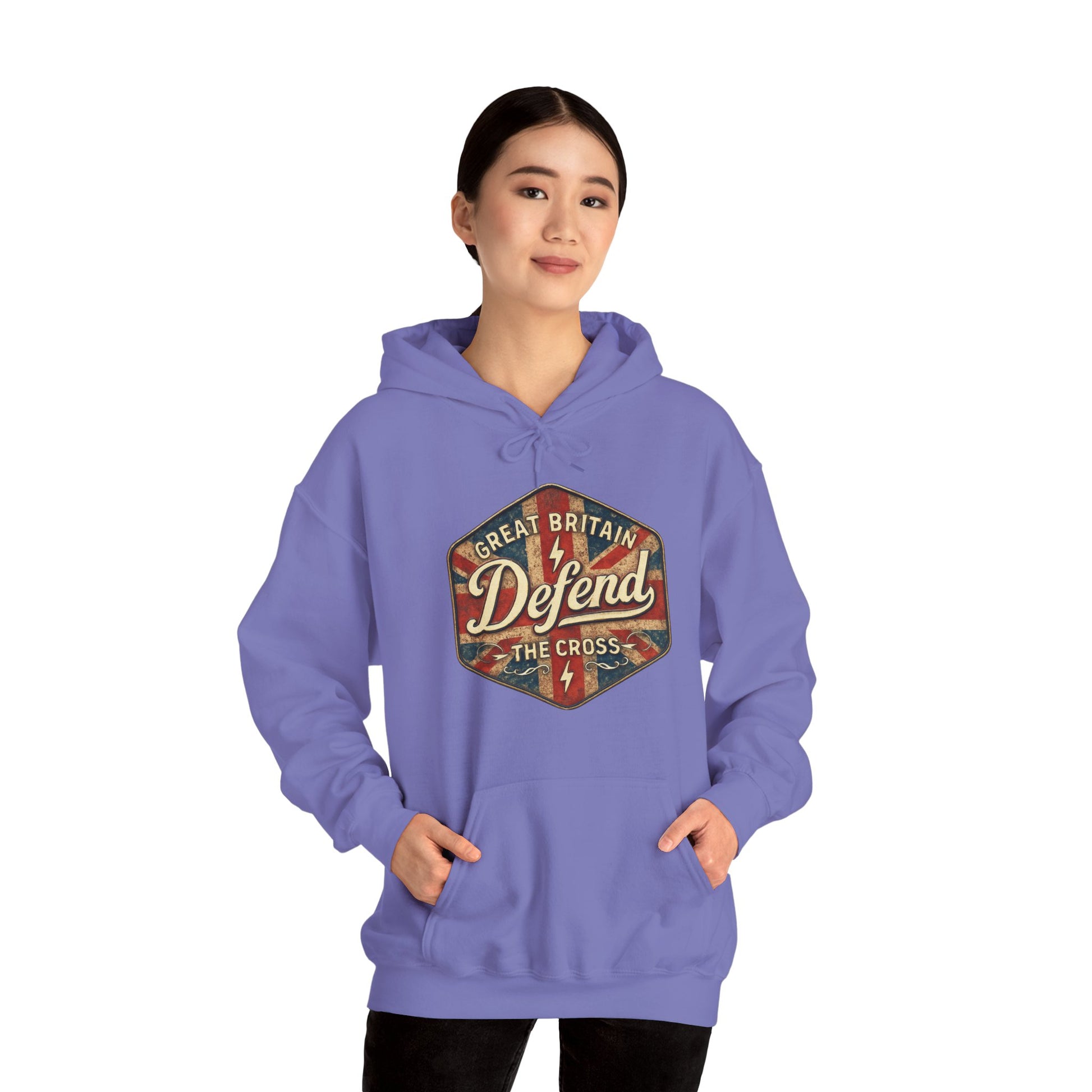 Unisex Heavy Blend Hoodie - Great Britain Defend the Cross Sweatshirt, Casual, Comfortable, Gift, Everyday Wear